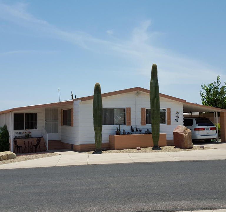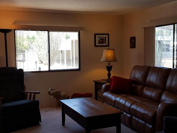 This immaculate home has WOW factor! Great location on the edge of Tucson Estates (short walk to trail head and walking your pet), mountain views and AZ Room with Low-E windows (add'l 380/sf). Features include: 2013 roof, 2010 EFFICIENT heat pump and A/C unit, NEW oven, refrigerator, microwave, laminate floor and solar tube. Newer window treatments, newer thermal windows, plumbed for water softener, private semi-walled yard and extra storage! HOA includes swimming, golf, fitness center and more...in this 55+ Active Adult community!