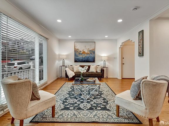 Comfortably and beautifully set in the rolling hills of Merced Heights in San Francisco near historic San Francisco State University, majestic Lake Merced, and awesome Stonestown Galleria. This home has been wonderfully renovated with new painting inside and out, new permitted electrical wiring, brand new permitted windows in the living room and kitchen, nicely remodeled kitchen and bathroom, hardwood flooring bright and sparkly. Windows in the back of the house were replaced with modern double-paned windows a few years ago. The kitchen appliances are brand new except for the stainless-steel refrigerator. Aside from the 2 roomy bedrooms on the top floor, there is a roomy bonus room in the basement which could be used as an extra bedroom or office. The basement is huge. It extends the full length of the house. It has room for 2-car tandem parking, a workbench, and a washer and dryer. With the bonus room and huge parking space, there is potential for adding a bedroom and bath. The backyard is huge for San Francisco. Let your imagination run wild with possibilities. Choosing this magnificent home, with many friendly neighbors, would certainly give you many years of enjoyment and peace.