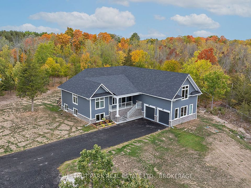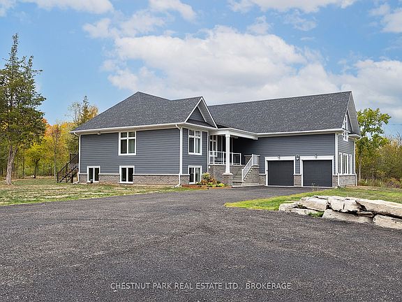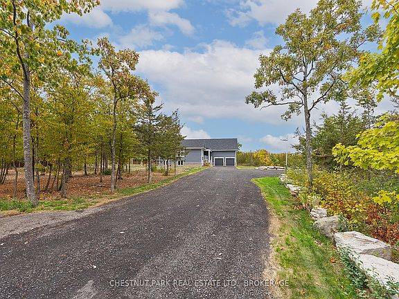 Experience the epitome of luxury country living in this stunning home that combines contemporary elegance with impeccable attention to detail. Flooded with natural light and designed with exquisite craftsmanship, this residence offers the perfect blend of elegance, comfort, and modern sophistication in a serene setting.The bright and airy interior features 10 ceilings, striking 8' solid wood doors, pot lights, and masterfully handcrafted mouldings throughout. The 2,167 SF main level boasts oak floors and an open-concept design with vaulted coffered ceilings and large windows that frame picturesque views of the countryside and expansive deck. The custom kitchen features a generous island and quartz countertops, blending style with functionality.The primary suite offers a striking feature wall, patio doors to the deck, two custom closets, and a luxurious ensuite with a soaking tub and walk-in shower adorned with spectacular tile. The main floor includes two additional bedrooms, an office, a full bathroom, and a powder room. A private hallway leads to a fourth bedroom with an ensuite and direct outdoor access - perfect for guests.The stairway to the lower level is equipped with motion-activated lighting, blending functionality and ambiance. This 2,158 SF space features includes a fifth bedroom, a cold room, and ample storage. Set on nearly 2.5 acres on the outskirts of the charming town of Yarker and surrounded by mature trees for ultimate privacy, this home boasts a massive 734 SF garage with 18' ceilings, with the potential to add a loft space. Enjoy the outdoor amenities, including an inviting fire pit, a separate cabin for entertaining or relaxation, a sauna, and a large storage area.Rarely is a property of this caliber available. Experience the perfect blend of luxury and natural beauty in this exceptional home. Discover a sanctuary where breathtaking views meet unparalleled craftsmanship, creating an inviting space you'll be proud to call home.