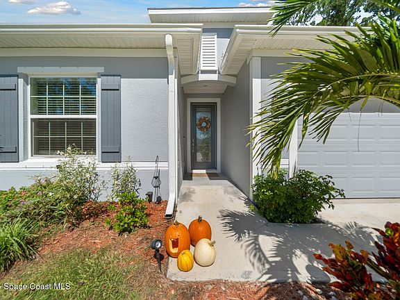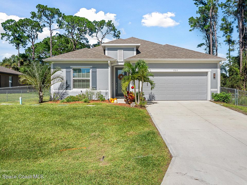 Welcome to 531 Breakwater St SE — a beautifully maintained, CBS home built just two years ago! This home is loaded with upgrades you won't find in most new homes on the market. Enjoy 9' ceilings, crown molding, colonial baseboard, upgraded ceramic plank tile flooring and tray ceilings that add a touch of sophistication. The open-concept kitchen features designer wood cabinetry with 42'' upper cabinets, granite countertops, pendant lighting, a huge island and stainless steel appliances — perfect for any home chef. The spacious primary suite offers a walk-in closet, large double vanity with granite countertops, tiled shower and separate tub. Enjoy a screened lanai and a fully fenced backyard that is ideal for relaxing or entertaining. Additional highlights include hurricane shutters, city water, and modern energy-efficient construction. Conveniently located near shopping, dining, and parks - this move-in ready home perfectly blends style, comfort and value!