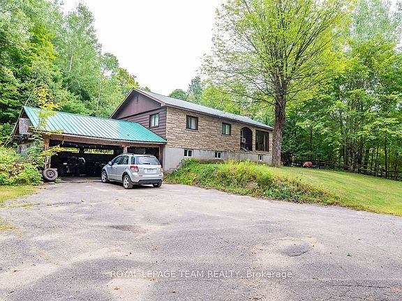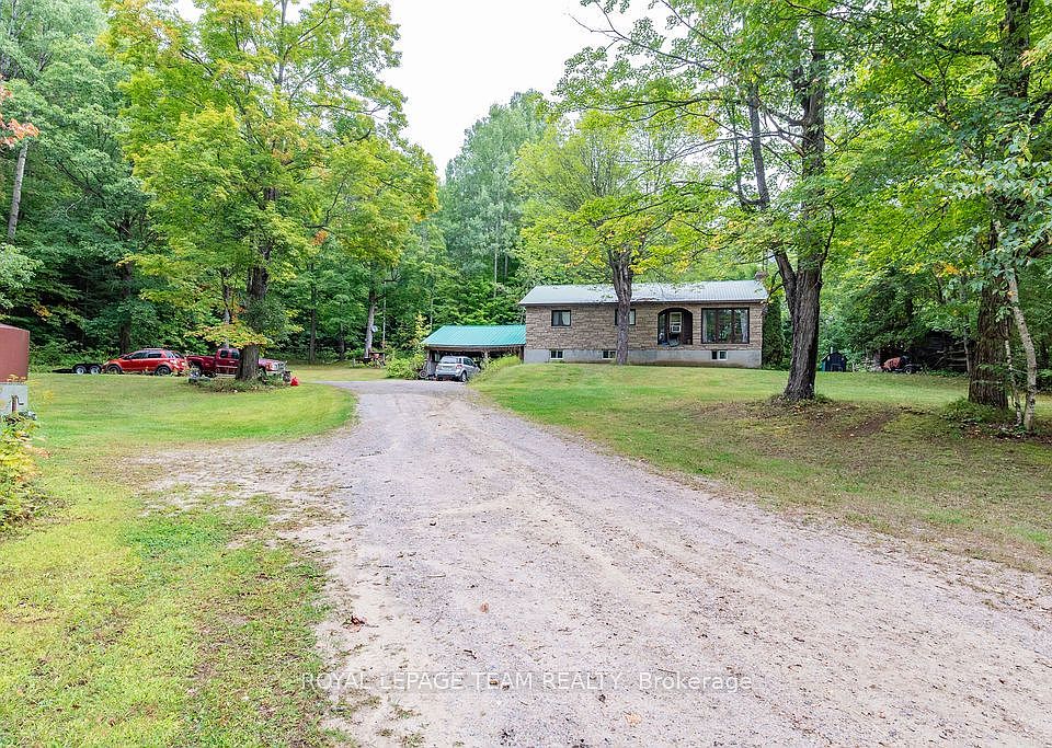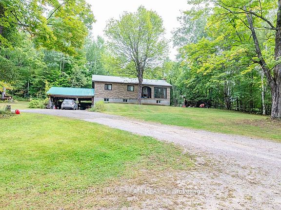 Charming 3-Bedroom Bungalow with Walkout Basement in a Forested Setting. This high ranch style home sits on a quiet, newly paved road and offers the perfect mix of comfort, space, and outdoor adventure. Surrounded by mature trees and backing directly onto public land, its an ideal choice for buyers seeking privacy and a peaceful lifestyle just 30 minutes from both Barrys Bay and Bancroft.The main level features a bright and functional layout with a spacious eat-in kitchen for family meals, a generous living room for relaxing or entertaining, three well-sized bedrooms, and a full bath. Each room is practical yet versatile, ready for your personal style and finishing touches.The walkout lower level provides even more potential. Currently unfinished, it includes laundry and plenty of open spacea blank canvas for a rec room, home office, gym, or hobby area. With direct access to the backyard, this level is convenient for families, pets, or anyone who loves the outdoors.Outside, enjoy a large back deck framed by forest views, offering a private space for morning coffee, summer barbecues, or simply taking in the quiet. With trails, freshwater lakes, and four-season recreation all close by, and public land at your back door, this property connects you directly to the best of outdoor living.Practical in design and exceptional in setting, this 3-bedroom bungalow provides the rare combination of rural privacy with proximity to amenities including hospitals, schools, and shopping. Whether youre starting out, upsizing, or looking for room to grow, this property offers a lifestyle worth embracing.Showings by appointment onlycome and explore the possibilities today.