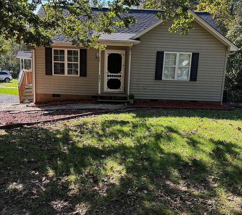 Nice 2 bedroom and 1 bath house located in Graham for rent exclusively through Burlington Rentals. Living room with vaulted ceiling open to the kitchen. Kitchen has electric range, refrigerator and island with bar stools. Deck off kitchen, corner lot and gravel circle drive. Gas heat, central air, city water/sewer/gas. NOT accepting for Section 8 on this property.