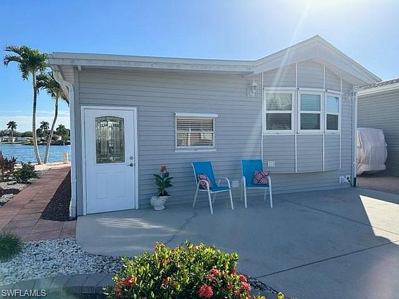 Thank you for viewing 531 Cheetah Drive in the Imperial Wilderness community – a gated 55+ community that is exceptionally maintained, fun, active, and scenic! This 1Br, 1Ba home is truly an entertainer’s dream! The living room and kitchen are extremely spacious and feature brilliantly panoramic water views. The location is ideal. The rear of the home offers a composite deck and pavers facing the widest expanse of the large lake. Across the water, in the back of the home, there is a direct sightline of the clubhouse. The front faces the satellite pool and spa. The home is being sold furnished and holds coastal themed decor. In the kitchen, there is a sink disposal, dishwasher, and newer refrigerator. The bathroom boasts a large walk-in shower with seat and safety bars. The laundry/storage closet is quite spacious. In addition to all of these features, YOU OWN THE LAND, and the low HOA fee ($792.00 per quarter) covers so much: water, lawn care, basic cable, trash/recycling, and community amenities. Community amenities include the following: 2 pools with spas, bocce, pickleball, tennis, shuffleboard, billiards, a library, clubhouse, dog parks, and more!