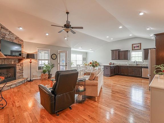 - Ceiling Fan(s), Cathedral Ceiling(s), Tray Ceiling(s), Attic Stairs Pulldown, Fireplace, Ceiling - Smooth, Solid Surface Counters, Open Floorplan