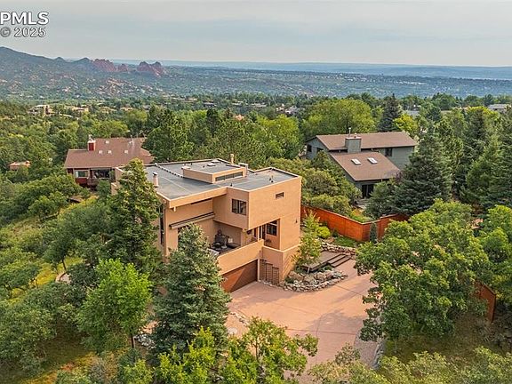 *Take a look at the video tour hyperlink of this masterpiece with Unmatched Mountain View’s. Experience the pinnacle of Colorado living in this custom home among nature with views from every side of the house. Located in Crystal Hills with no HOA, it’s perfectly positioned to capture the best views in town. Overlooking the majestic Manitou Springs mountains, Garden of the Gods, and Red Rock Open Space, this architectural gem offers panoramic vistas from nearly every window. The home was crafted with meticulous attention to maximizing both mountain and city views, bringing the outdoors in with its seamless integration of light, space, and landscape.Featuring 5 bedrooms and 3.5 bathrooms. This home boasts a main living room with soaring 17-foot ceilings, topped with an impressive great room reaching over 20 feet, flooding the interior with natural light from the clerestory windows. Step outside and immerse yourself in spa-like outdoor living spaces, complete with lush, serene landscaping, a tranquil water feature, and a level of privacy rarely found so close to town. Enjoy Colorado’s beauty from a deck on every side of the home, constructed with premium Redwood and Fiberon Composite decking, designed for low maintenance and timeless appeal. Additional highlights include: The air conditioning is an added comfortable benefit, the heat pump provides both heating and air conditioning. Clean, quiet hot water heating system with multiple thermostat zones for personalized comfort. High-end Marvin windows and deck doors, framing breathtaking views of Intemann Trail, Ring the Peak, Garden of the Gods, and Section 16 trail. Trail access within 300 yards, connecting you directly to the outdoor adventures of Red Rock Open Space. This is more than a home—it’s a sanctuary where nature, architecture, and luxury meet.