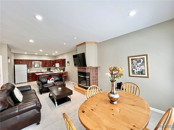 Welcome to the largest floor plan in the Fox Ridge/Deer Crossing/Winter Heights complex—your very own 2,520 square foot townhouse/condo in the heart of Holiday Valley! Perfectly situated for year-round adventure, this 3-bedroom, 2.5-bath tri-level unit puts you just minutes from world-class skiing, golf, shopping, dining, and all the charm of Ellicottville Village. The first floor includes a spacious bedroom with private full bath. There is also ample storage and utility area. Head up to the open-concept second floor—ideal for entertaining—with a gas fireplace, spacious kitchen, dining area, and walk-in pantry/laundry room. A convenient half bath is plumbed for an additional shower. On the third floor, you'll find a primary suite with private balcony, a bunk room, and a versatile 11' x 5' walk-in closet that could serve as an office or kids’ hideaway. Enjoy breathtaking views of the slopes and nature from the 2nd floor balcony. Updates include a new roof (2023), tankless water heater (2024), newer appliances, brand-new carpet (2025), and more. Most furnishings stay (some exclusions apply). The furnace is A/C ready—just add an outside condenser! Short-term rentals are allowed, and a shuttle takes you right to the lifts. Don’t miss out on this spacious, turnkey retreat in one of Ellicottville’s most sought-after communities!