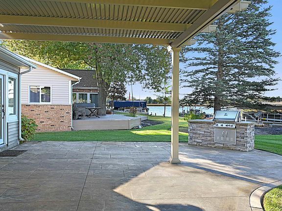 Discover lakeside living at its finest with this beautifully updated 4/5-bedroom, 3-bathroom channelfront home on Lake Wawasee, offering breathtaking views and over 80 feet of prime waterfront. Meticulously renovated by renowned local custom builder TL Jackson, this turnkey gem is ready for you to start making memories with family and friends.Step outside to your private oasis, featuring a stamped concrete patio shaded by a motorized pergola – perfect for relaxing afternoons. The outdoor kitchen makes entertaining a breeze, whether you're hosting a summer barbecue or a cozy evening by the water. Inside, modern updates throughout create a seamless blend of style and comfort, ensuring every moment feels like a vacation.As part of Oakwood Park, you'll enjoy exclusive access to a private beach near the pier and hotel, combining the tranquility of channelfront living with resort-style amenities. Don’t miss this rare opportunity to own a slice of paradise on Lake Wawasee – where luxury and leisure meet! Schedule your tour today!