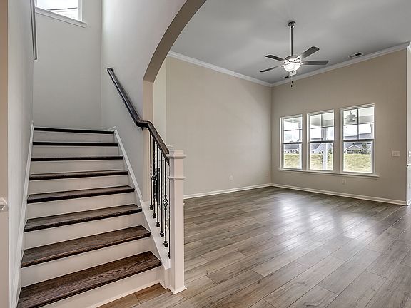Ready in June! Welcome to the Fullerton in Arcadia, a natural gas community! Fall in love with this craftsman-style 2-story layout with 12-foot ceilings throughout the great room, kitchen, and eat-in dining! The primary bedroom with boxed tray ceiling is on the main level, along with an extra-large laundry room with plenty of cabinets and luna pearl granite top. Another bedroom and bath are found on the main level, with a 3rd bedroom and bath located upstairs. You'll find the large walk-in attic storage up there too! From the gourmet kitchen with beautiful white cabinetry, tiled backsplash, large one-level island with quartz countertop, you have the perfect view to the fireplace in the great room. The primary bath features a tiled shower with glass enclosure, extra-large double bowl vanity, and a spacious walk-in closet. Crown molding, judge's panels and chair rail will be featured in the foyer entry. The stairs will have wood treads, baths will have ceramic tile flooring, and luxury vinyl plank will be throughout the remaining main level living areas. Plush carpet will be featured in all bedrooms. All homes will include Framed Mirrors in all baths, full yard irrigation system, and Smart Home Automation. Our 1-2-10 year warranty will give you peace of mind. Superior energy efficient construction includes 15 SEER HVAC and R-38 ceiling insulation. Photos shown are of a furnished Fullerton model in another community - colors, features and options will differ from shown.