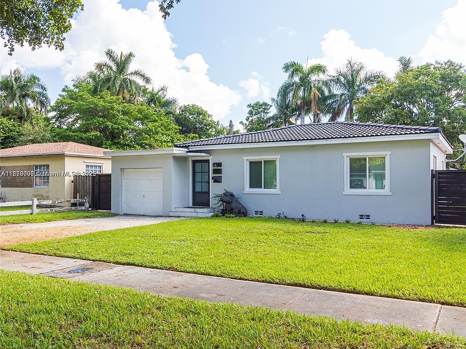 Beautifully updated 3-bed, 2-bath home in the heart of Miami Springs! Featuring impact windows & doors, a chef’s kitchen with wood cabinets, subway tile backsplash & marble countertops, plus elegant spotlights, updated baths, and sleek tile floors. One bedroom offers a private entrance—perfect for in-laws or guests. The garage conversion provides extra living space while still allowing storage. Enjoy an oversized backyard ideal for entertaining, kids, pets and also has one of biggest Mango tree you have ever seen. All just minutes from Miami International Airport, dining, and entertainment! washer/dryer do not convey