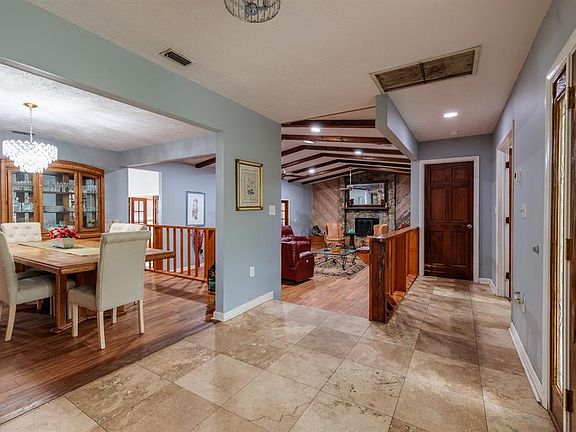 This spacious 5-bedroom, 3-bathroom split-level ranch home is ideally situated on a peaceful street in the leafy, well-established neighborhood of Temple Terrace, just around the corner from the Temple Terrace Family Recreation Complex. Nestled on a generously sized lot, the property has a backyard complete with a deck, inground pool, and a large, screened lanai, perfect for outdoor living and entertaining. Recent updates include a new roof (2023), a new A/C unit (December 2024), a fully renovated kitchen (2024), updated bathrooms, and a new water heater (2023). The expansive great room features soaring cathedral ceilings, a wood-burning fireplace, and French doors that open to an enclosed, air-conditioned Florida room, providing fantastic additional space for family and friends to gather. The brand-new kitchen offers granite countertops, an eat-in breakfast area, and plenty of storage, making it a dream for any home cook. The large master suite includes an ensuite bathroom with a jet tub, its own water heater and a separate walk-in closet, offering a private retreat. On the opposite side of the house are 3 guestrooms and 2 full bathrooms. The versatile 5th bedroom is currently being used as an office. A floor plan is included with the photos of the property. This home is located in a non-flood zone, so no flood insurance is required, and there are no HOA or CDD fees. The neighborhood is known for its excellent Charter Schools, and nearby International Baccalaureate programs. Conveniently located near I-75, the University of South Florida, the 14th hole of the Temple Terrace Golf and Country Club, Busch Gardens, the VA and Moffitt Hospitals, and just a short drive to beautiful beaches, this home offers the perfect balance of tranquility and accessibility.
