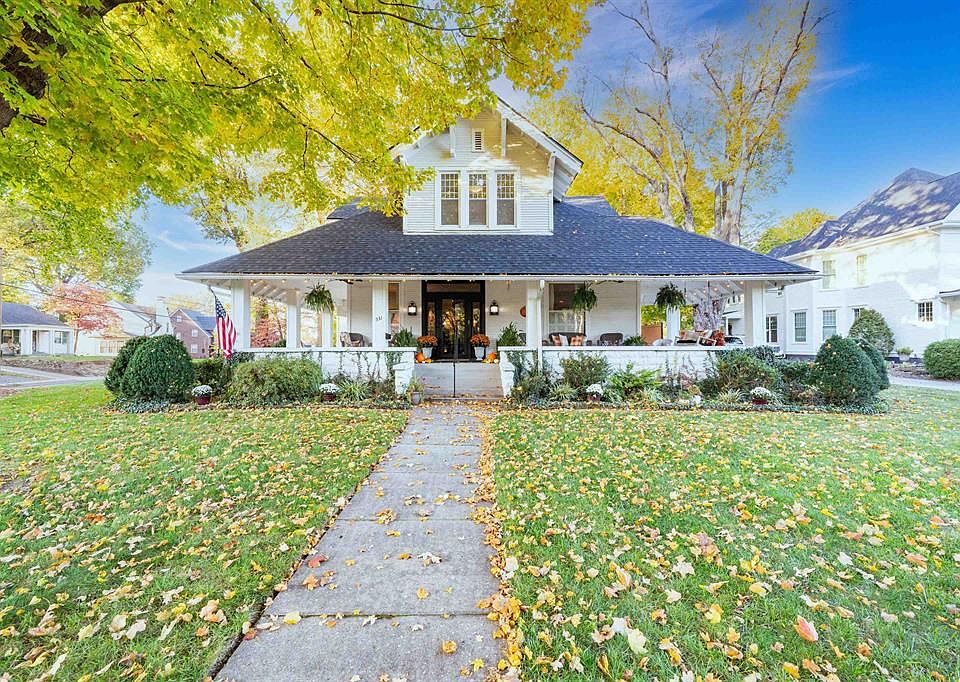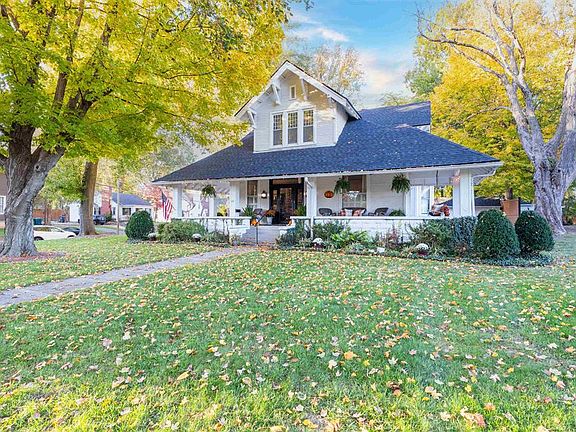 Step into Owensboro history with this early 20th-century craftsman cottage on a landscaped corner lot. Featuring a wrap-around front porch, back porch, 10-foot ceilings, crown moldings, and restored hardwood floors. Three large bedrooms, a small bedroom, and three full baths, including a first-floor primary with clawfoot tub. Classic kitchen with black-and-white checkered floor, butcher block counters, and farmhouse sink. Historic details include three fireplaces, chandeliers, and Art Deco stained glass. A perfect blend of timeless charm and modern comfort, with a Generac generator included.