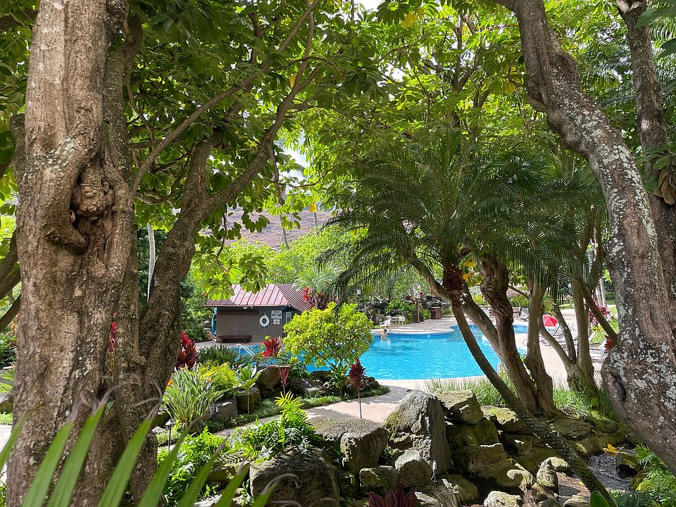 This partly furnished, 2 bedroom, 2 bathroom, 1211 sq ft, 2nd floor unit has quartz countertops, deep stainless steel kitchen sink, S/S appliances (including range, microwave/hood, refrigerator, dishwasher, washer and dryer). This 2nd floor unit is shaded by trees and there is a view of the meandering stream below. The Mauna Luan is known for its amenities which include lagoon styled pools with slides and waterfalls, 7 jacuzzies, a fitness room, putting green, 10 private BBQ areas, racquetball courts, saunas, and recreation rooms with kitchens. This unit includes 2 parking spaces. The rent includes water and basic cable.