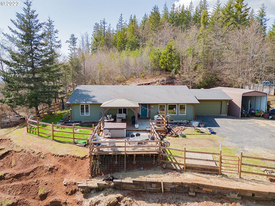 Welcome to your dream home! This stunning real estate gem boasts 2+ breathtaking acres of pure natural beauty, offering a peaceful escape from the hustle and bustle of city life. Red volcanic soil for possibly growing grapes on hillside. Step onto the massive deck and behold the awe-inspiring views that stretch for miles, inviting you to unwind and soak in the serenity. Inside, this home has been meticulously remodeled. The 4 spacious bedrooms and 2 bathrooms offer ample room for the entire family to relax and rejuvenate. The beautiful kitchen is a true chef's delight, featuring sleek granite counters, farmhouse sink and a large butcher block island perfect for meal prep and entertaining. Engineered hardwoods add a touch of sophistication to the already impressive interior, creating a warm and inviting ambiance. The great floor plan is ideal for both cozy family nights and festive gatherings, providing the perfect balance of comfort and elegance. The natural landscaping surrounding the property is a true delight, offering endless possibilities for those with a green thumb. And with plenty of room for your furry friends and animal companions to roam free, this home truly has it all. Don't miss this rare opportunity to own your own private oasis in the heart of nature. Come see for yourself and fall in love with everything this spectacular property has to offer!