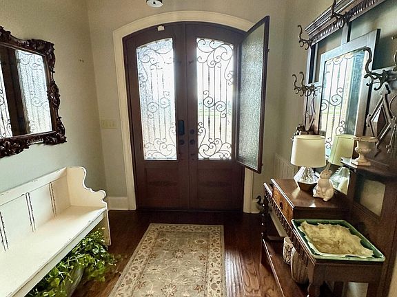 This five-bedroom, three-bathroom home sits on 3± acres with tons of beautiful landscaping. It has tile and engineered hardwood floors to compliment the custom crown molding and baseboards. In the kitchen, there are quartz countertops and stainless steel appliances. There are marble countertops in all three bathrooms. In the sunroom, you will find custom shades along the large windows.