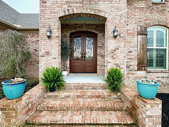 The exterior of the home is completed with the custom shutters throughout the home and a custom front door designed by MS Ironworks. The new outdoor entertainment area with stamped concrete is ideal for entertaining as a mosquito system has recently been installed.