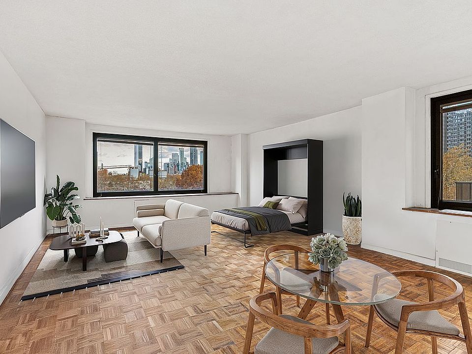 Discover the incredible potential awaiting you in Apartment 504, a generously proportioned studio cooperative nestled on the desirable and tranquil Roosevelt Island. This unique home offers an unparalleled chance to craft your dream urban retreat, boasting a desirable layout that includes a rare and highly convenient one and one-half bathrooms.
