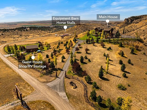 Experience the best of Montana living on 42.7± acres in Gallatin River Ranch. This beautifully maintained log home has been extensively updated with new windows, exterior doors, trellis, expanded deck, and a blacktop driveway. Inside you’ll find an open kitchen/dining/living area with gas fireplace, hardwood floors, office, and a spacious main-level primary suite with soaker tub, walk-in closet, and private bath. The walk-out lower lower level offers a theater room, family/game room with pool table, craft/homeschool space, safe, mudroom, pantry, and heated 2-car garage with epoxy floors. In total, the home provides 4 bedrooms, 2 offices, 3 full baths, and 2 half baths. A detached guest house includes 2 bedrooms, full kitchen, wood floors, laundry, and living area. Outbuildings feature a heated shop with RV bay, large equipment barn, and horse barn with heated tack room, saddle racks, and covered bays. Ownership at Gallatin River Ranch includes access to 2.5 miles of private Gallatin River frontage with beautiful river accesses, 640+/- acres of land-locked state land, 270 acres of Fish & Wildlife Parks land, and 1,600+ acres of open space for hiking, riding, and enjoying wildlife. A world-class equestrian center is located within the Gallatin River Ranch, offering training, boarding, indoor/outdoor arenas, and more. All this just 25 minutes from Bozeman. Extras include dual AC, propane generator, whole-house sprinkler system, and 2024 side-by-side ATV. Seller is offering a $35,000 credit at full price toward flooring and/or bath remodel.