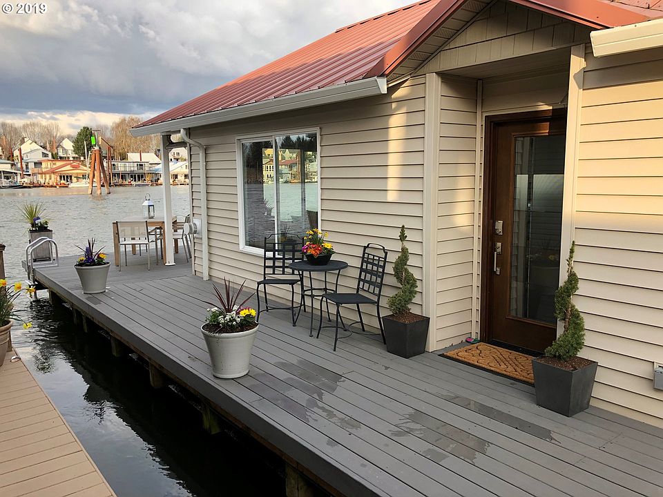 Move in ready floating home with desirable floor plan...one level, 2 bed 2 full bath plus utility room. Big deck, awesome view. Big boat parking in front (deep water) plus available slip in back for additional rent. Spacious decking for sunset watching. Large bedrooms, 2 full bathrooms. Open concept, vaulted ceiling, fan, gas fireplace, AC via mini split. This is a 10! Owner-occupied moorage, pet-friendly, gated, guest parking available.