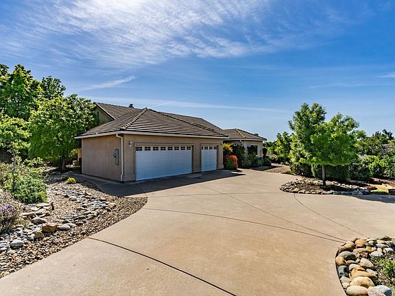 Make a move to the Foothills and live near Championship golf at La Contenta Golf Club and just minutes from New Hogan reservoir. Updated contemporary style single level 4 bedroom 2.5 bath 2201 sq. ft. home in a private setting on .31 acre lot with public water & sewer. You'll be impressed with the open floor plan with 10' ft ceilings and gorgeous hardwood floors in the family room and kitchen areas. Great room with lots of natural light from the transom windows. Gourmet kitchen with spacious granite island with built in wine refrigerator, stainless appliances, trash compactor, microwave oven, dishwasher and plenty of pantry storage and space. The primary bedroom is located separately from the other 3 guest bedrooms. Nice primary bathroom with dual vanities, separate tub and walk in tile shower. 1/2 bath just off of the 3 car insulated garage with 220. Guest bedrooms and remodeled bath with roll in tile shower (handicap accessible) allow for added privacy for guests or multi generational living. The family room features a beautiful gas log fireplace with built in bookcase and French door out onto the patio. Tile roof and low maintenance stucco exterior. Extra concrete parking area and side yard access with a garden shed. Mature low maintenance landscaping. So much to offer
