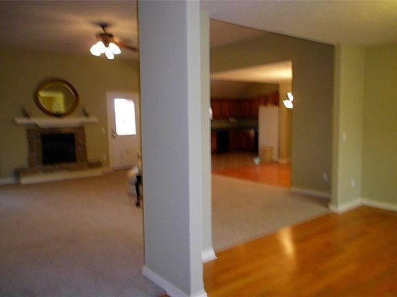 Beautiful brick and vinyl one level home with split bedroom floor plan. Very open living room and kitchen. Huge kitchen w/tons of cabinets! Large breakfast area off kitchen. Pretty stone gas log fireplace in living room. Granite counters in kitchen, hardwood floors in breakfast area. 2" blinds throughout, 3 car garage, wired for security. Plumbed for sprinkler system front and back yards.