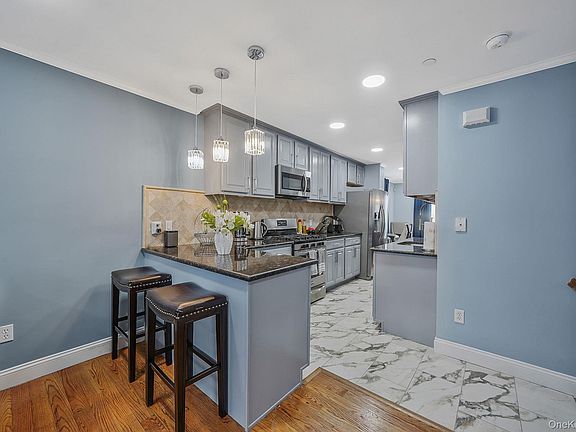 Step inside and you’ll immediately notice the spacious, three-level layout designed for comfort and easy living. On the main level, the open-concept floor plan features hardwood floors, central air, and a bright efficiency kitchen with granite countertops and stainless steel appliances. The kitchen flows right into a generous dining area and a large living room with sliding doors that lead to a cozy balcony.