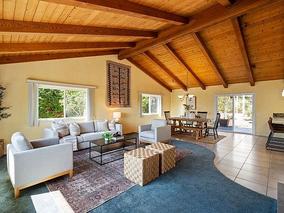 With an elevated setting and a desirable corner location within Oak Ranch Estates, this unique custom-built home was constructed in 1987; almost 8 years after the surrounding homes of the subdivision were completed. The .55-acre parcel enjoys a west-facing orientation and a generous separation from neighbors. That feeling of expansiveness continues inside the split-level home where the wood tongue & groove vaulted ceilings add spaciousness to the open-concept living room. The bright and updated kitchen features quartz counters, and both full bathrooms feature stone or tile counters and showers. Staying cool is easy with the new HVAC replaced in 2021. Fenced for extra privacy, the enormous and beautifully landscaped rear yard includes wrap around raised deck, detached covered patio for outdoor dining & entertaining, rose gardens & room for a horse on site, or in the neighboring HOA corrals for an extra fee. The oversized garage features convenient bath plus workshop area. On the market for the first time in 25 years, this well-maintained property offers the whole package!