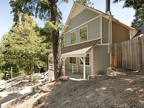 This is the CUTEST CABIN EVER!!!! YOU WILL LOVE the Just Remodeled Kitchen with Forest Green Cabinetry, Brick Backsplash and Butcher Block Countertops! Breakfast Bar and Separate Dining Area too! So Cute!!! Stylish Living Room and Dining with Beamed Ceilings and Cozy Corner Fireplace! Upstairs are 2 Bedrooms with Oversized Closets and a Full Bath! Laundry Hookups in Hallway Closet for Convenience! Some Newer Windows, Brand New Heaters and all New Luxury Vinyl Planking on the Stairs, Bedrooms and Bath Upstairs! Bathrooms Got a Redo too with New Vanities, Faucets, Toilets, Lighting, & Mirrors! Nice Long EASY Driveway Can Hold 3+ Cars... the Adorable Covered Porch to Sit Outside on & Enjoy the Fresh Mountain Air is AMAZING!!! There is a Fenced BackYard too with Awesome Covered Shed for Storage! 5 Minute Drive to Blue Jay and 10 To Lake Arrowhead or Crestline!