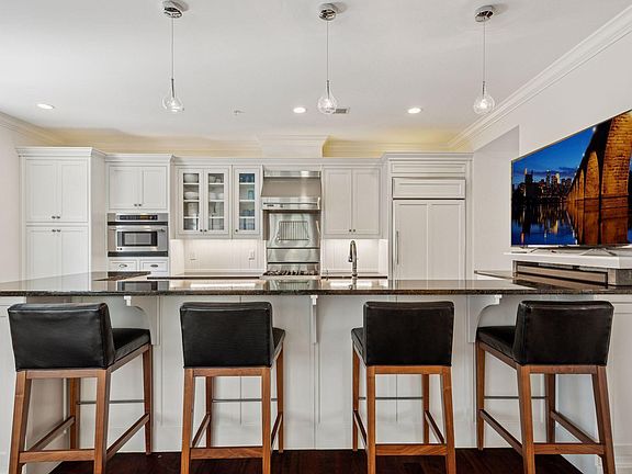 This unique residence enjoys windows on three sides for abundant natural light and shares only one wall with a neighboring unit, offering added privacy and quiet. Spanning four thoughtfully designed levels, the home features a chef’s kitchen with a spacious two-tier island and premium finishes, two cozy gas fireplaces, a tranquil primary suite, and generous storage throughout.