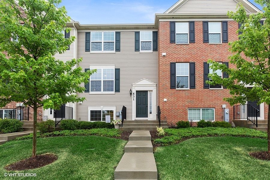 Welcome to this wonderful town home in one of Gilberts Town Center most desirable locations! Situated directly across from the wetlands, this energy efficient home does not disappoint. Like new and loaded with $20K+ in upgrades, this rarely available Georgetown model features 2 generous sized bedrooms plus a loft that is ideal for an office, play room or even 3rd bedroom. The main level boasts 9 ft. ceilings, a fabulous family room with sliders to the expanded exterior deck, and large, spacious kitchen with upgraded 42" cabinets, crown molding, and island. Other features include wrought iron interior railings with maple caps on all levels, custom interior paint, updated lighting and can lights, cabinet and door hardware and lam. hard wood flooring throughout the main level and lower level family room. An attached 2 car garage with quiet, chainless garage door opener make this home complete. Convenient location just minutes to I-90, Randall Rd shopping and restaurants, Gilberts community splash pad, parks and playground. Welcome Home!