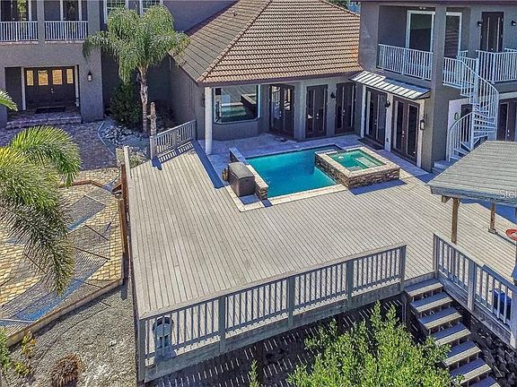 Below market opportunityl! This breathtaking custom-built home showcases water views from nearly every room and offers the perfect blend of elegance, comfort, and Florida lifestyle living. Designed with exquisite detail, the home features custom ceilings in every room—including tray and coffered ceilings—along with archways, crown molding, and rich hardwood, travertine, and tile flooring throughout. The chef’s kitchen is equipped with high-end stainless steel appliances, granite countertops, a glass cooktop, and a built-in Sub-Zero refrigerator and freezer. The luxurious owner’s suite is a private retreat with its own foyer, sitting area, and French doors leading to a balcony overlooking the pool, tiki hut, and waterway. The spa-inspired bathroom includes dual vanities, oversized double showers, and expansive his-and-hers closets. Designed with both family and entertaining in mind, the home offers a first-floor master, multiple oversized secondary bedrooms with en-suite baths, an executive office, media room, second kitchen with wet bar, and a private-entry upstairs recreation room. A 6+ car garage ensures plenty of space for vehicles, storage, or hobbies. Outdoor living takes center stage with over 7,000 sq. ft. of entertaining space, featuring a resort-style pool and spa, outdoor kitchen, and covered seating areas. For boating enthusiasts, the private dock is fully equipped with electricity, water, and a covered lift, offering direct access to Tampa Bay and St. Pete. This estate delivers the very best in luxury waterfront living. Schedule your private showing today and experience it for yourself.