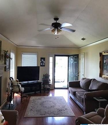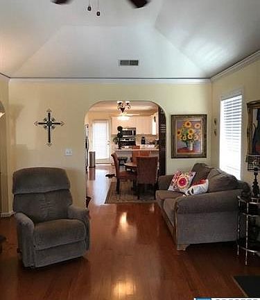 NO CARPETING! Nice 1-level home in Pelham with tile and real hardwood flooring throughout. Textured walls and smooth ceiling. This is a one owner home that has been well cared for. Open floor plan is great for entertaining. Spacious Master Bedroom has Cathedral ceilings, walk-in closet, double doors leading to Master Bath with garden tub, linen closet and Cathedral ceiling. Crown Molding throughout. LR also features gas fire place with slate surround. Dining area has trey celings. Kitchen has breakfast bar, ton of cabinets plus a pantry, and stainless appliances that remain (including refrigerator). This split bedroom floorplan has the Master in the front of the home and Guest Bedrooms and Bath are off the kitchen. Both guest bedrooms are good size with nice closet space. Landry closet is in the Kitchen Dining Area. Back yard features a storage closet, storage shed, patio area and fenced yard. This one is move in ready so come on and check it out.