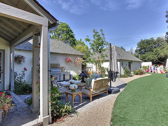 English Country Cottage has an idyllic setting in the Park, across from a private wooded island. 4 bedrooms, 3.5 full baths in house plus 1/2 bath in garage, appointed with timeless European accents of harlequin glass, wooden shutters and red brick. Fabulous floorplan and landscaping for living and entertaining. Dramatic high ceilings, dark wide plank floors with designer paint colors, new electrical and plumbing, new kitchen and appliances, 2 wood burning fireplaces, 2 car garage, and 2 attics plus small basement for storage!Lots of extras, turf lawn (no maintenance/water), heated towel racks, closet systems, firewood storage, vaulted storage for bikes, adjustable shelves in built in bookshelves, whole house fan, wine storage, etc.