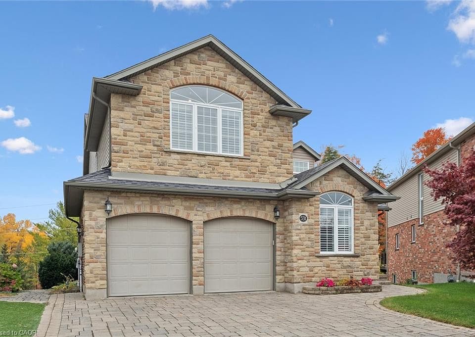 Your dream home awaits! Welcome to 531 WOOD NETTLE WAY, a spectacular CUSTOM-BUILT HOME on a premium PIE-SHAPED LOT (0.17 ACRES) in the highly sought-after neighbourhood of LAURELWOOD. From the moment you arrive, the grand DOUBLE-WIDE PAVER DRIVEWAY and wrap-around walkway create an unforgettable first impression, leading you to the elegant front entrance. Step inside this PROFESSIONALLY DESIGNED, OPEN-CONCEPT MASTERPIECE, where soaring 18-FOOT CEILINGS in the foyer welcome you home. Host unforgettable gatherings in the FORMAL DINING ROOM complete with a BUILT-IN WINE RACK, before moving into the stunning EAT-IN KITCHEN featuring GRANITE COUNTERTOPS and a SPACIOUS ISLAND & STAINLESS APPLIANCES. The OPEN-CONCEPT LIVING ROOM, featuring a cozy GAS FIREPLACE and elegant FRENCH DOORS, flows seamlessly out to the COVERED PRIVATE DECK—a serene retreat crafted with CUSTOM COMPOSITE DECKING and a GLASS RAILING SYSTEM. Need a workspace? Discover the luxurious MAIN-FLOOR OFFICE, filled with natural sunlight and its own private entrance. This level also boasts 9-FOOT CEILINGS, POT LIGHTING, and a convenient TWO-PIECE POWDER ROOM. The grandeur continues upstairs, where the PRIMARY BEDROOM offers a HUGE WALK-IN CLOSET and a luxurious 5PC ENSUITE with JACUZZI TUB and TILED SHOWER. Two additional bedrooms both feature WALK-IN CLOSETS, one with a CHEATER ENSUITE, plus a LAUNDRY ROOM with sink, shelving, and cabinetry. The LOWER LEVEL reveals incredible potential with a LARGE REC & GAMES ROOM with walkout to a STONE PATIO, plus a 3PC BATH WITH HEATED FLOORING. The massive 30X20 BONUS ROOM is an untouched canvas for your dream theatre, hobby space, or rink. The DOUBLE GARAGE includes two inside entries and a FULLY EQUIPPED WORKSHOP—a handyman or handywoman’s dream. Surrounded by PARKS, TRAILS, AND TOP-RATED SCHOOLS, this one-of-a-kind home is minutes from COSTCO, THE BOARDWALK, YMCA PROGRAMS, and LAUREL CREEK CONSERVATION AREA.
