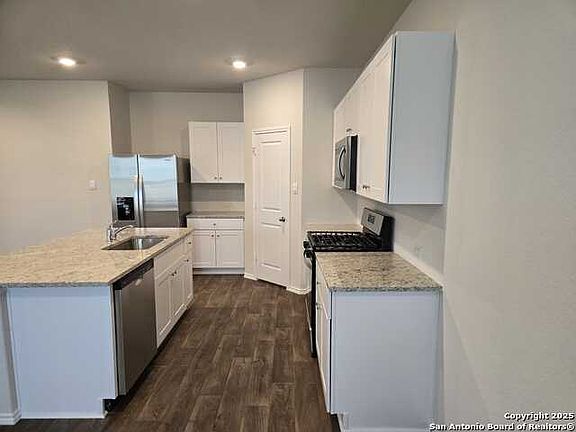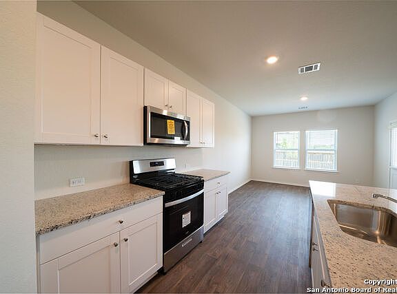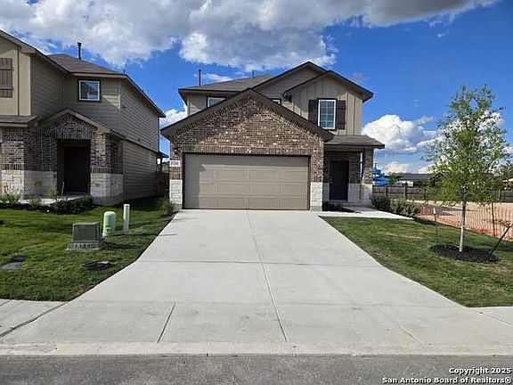 Step inside The Nicole plan, a two-story home featured in Riverstone at Westpointe in San Antonio, TX. Featuring 2 classic front exteriors, 4 bedrooms, 3 full baths and a 2-car garage, this floor plan is sure to turn heads. The Nicole offers 2473 square feet of comfortable living and includes a full bathroom and bedroom located right off the foyer that is perfect for guests. Continue down the hall to find an open concept plan with the family room opening to a gourmet kitchen and dining room. The kitchen includes granite counter tops, stainless steel appliances, shaker style cabinetry and a spacious corner pantry. A kitchen island overlooks the living room and includes a deep, single basin sink and a breakfast bar, perfect for fast mornings on the go. The wide, inviting staircase leads to a spacious game room, utility room, main bedroom suite, two secondary bedrooms with carpet flooring and spacious closets and third full bathroom. Your private main bedroom features an attached ensuite bathroom built with plenty of storage space, a walk-in shower and a separate water closet for the toilet. The grand walk-in closet is a stand-out feature of The Nicole floor plan, complete with plenty of windows for natural lighting. Additional features of The Nicole include sheet vinyl flooring in entry, living room, and all wet areas, granite counter tops in all bathrooms, and full yard landscaping and irrigation. This home includes our HOME IS CONNECTED base package. Using one central hub that talks to all the devices in your home, you can control the lights, thermostat and locks, all from your cellular device.
