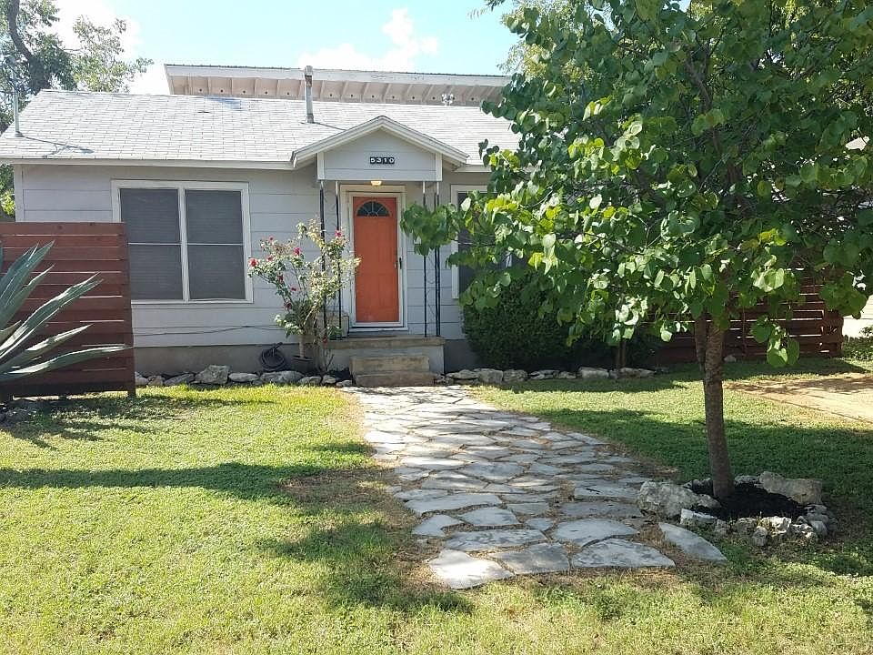 A very cool 1950s home in awesome central Ridgetop neighborhood (edge of Hyde Park - across 35 from Mueller). 2 bed, 1.5 bath. Home has some fantastic architectural touches (Open floor plan, Custom polygal windows, shiplap walls and ceiling, tasteful fixtures, etc) and an awesome kitchen with a large butcher block countertop island. Plenty of storage for a home of this era, including a stacking washer/dryer and pantry. Newer HVAC, tankless water heater, gas stove and stainless appliances (dishwasher, refrigerator, built-in microwave). Home has a great back yard (not too big, but wonderful covered patio - perfect for entertaining), and there is a landscaping maintenance contract. There is off-street parking, as well as fenced in storage (such as, for a small trailer/boat). Centrally located near 35, just a few miles from UT and downtown. Lots of great restaurants, bars, and boutiques within walking distance. Good deal at $2300 plus security deposit ($2K - willing to split over two months), and pet fee (if applicable). $50 application fee. Tenant responsible for all utilities. There is a garage apartment on backside of the lot (with separate entrance from cross street).