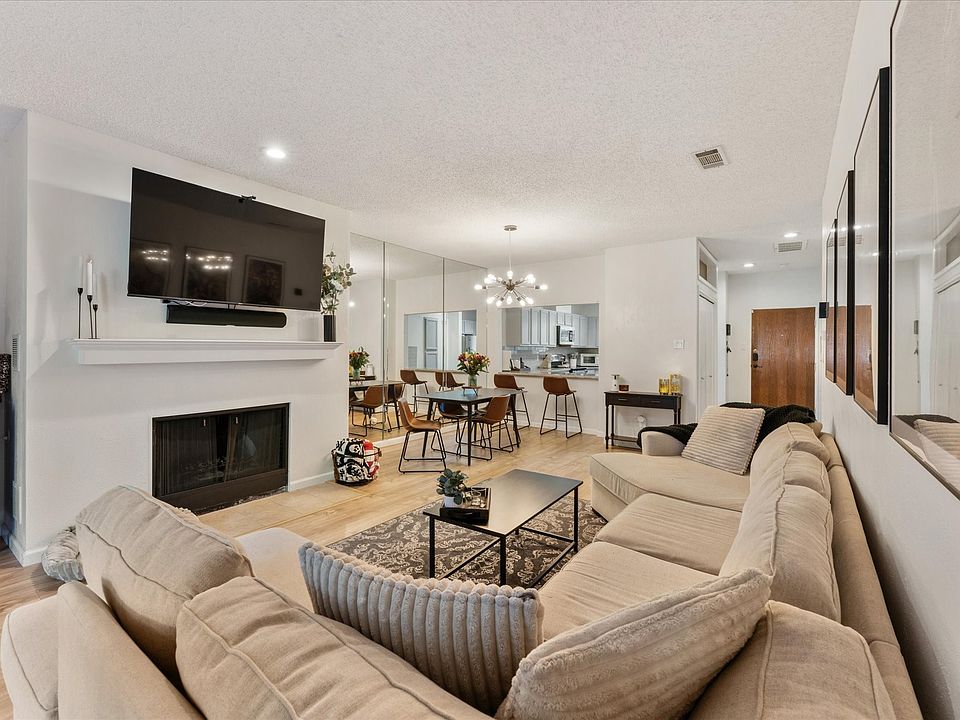 Beautifully updated Condo in highly sought after North Dallas location. Close to Tollway, Shopping and many Restaurants, this lovely unit includes updated LVP flooring, hvac. The open floor plan boasts lots of natural light, wood burning fireplace with and lovely balcony over looking mature trees and court yard. Nice size walk in-closet in Master. Outside storage on balcony. Condo has 1 assigned covered Parking Place and 1 assigned uncovered Parking Place. Unit is conveniently located between 2 elevators on 2rd Floor giving tree house feels and privacy. Washer, Dryer and Refrigerator to stay. This gated condominium community has a walking trail, green spaces, sparkling pool and grill area ready for you to enjoy! Schedule your showing today! Seller holds a real estate license.