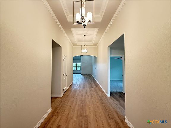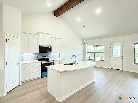 Don't miss the opportunity to own a new, high-quality Tippit built home in highly sought-after Three Creeks subdivision located close to Stillhouse Hollow Lake Dam, equidistant to the Temple/Belton or the Harker Heights/Killeen/Fort Hood areas. Situated on a cul-de-sac lot with a private backyard that borders onto greenspace, this home offers peaceful surroundings with the perfect proximity to both nature & everyday conveniences, & an up-to-date open concept floorplan connecting the spacious living area, dining area, & modern kitchen - perfect for entertaining or family gatherings. Kitchen highlights include an island with breakfast bar, loads of cabinets, & pantry. The primary suite is positioned to the rear of the home & boasts a luxuriously appointed bath with a voluminous closet. 3 additional well-sized bedrooms offer flexibility for family, guests, home office, or hobby space. A dedicated utility room is a welcomed feature as is the fully finished out dual car sized garage with opener. The huge, covered patio beckons to sit a spell & enjoy the outdoors & serenity of wooded area behind the fence. Lots of attention to details: i.e. crown molding & lintels, & full yard sprinkler system round out the amenities. Community Amenities include bike and/or walking trails galore with plenty of benches for rest & relaxation and/or enjoyment of the beautiful views, & a community pavilion perfect for family and/or community get-togethers. Another welcomed perk: this area is part of the Belton Independent School District!!