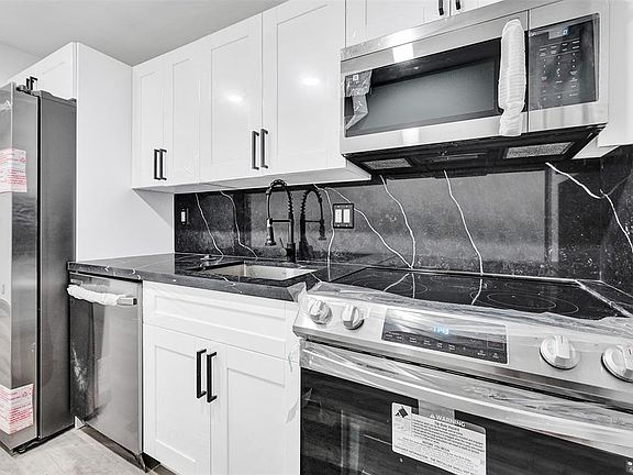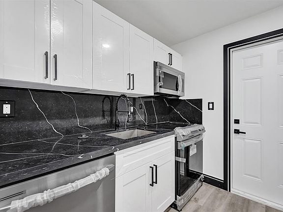 Turn Key, Move in ready! ALL AGES! 2 Beds/1 Bath remodeled unit on a triplex. Featuring a fresh interior with sleek gray flooring and bright, spacious rooms, this home offers the perfect backdrop for your personal touches. The contemporary kitchen boasts stunning marble backsplash, white cabinetry, and stainless steel appliances, ensuring both functionality and flair. FAST APPROVAL.