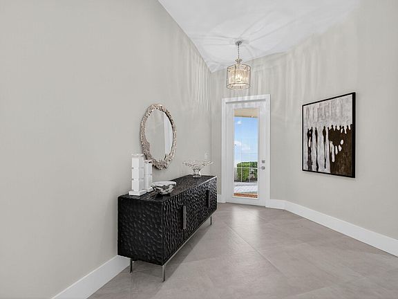 Discover this beautifully renovated single-story 3-bedroom, 3-bath home in the highly sought-after village of Laurel Pointe in Broken Sound Country Club. Designed with modern elegance, this residence features smooth walls, porcelain tile floors, and vaulted ceilings throughout. The open-concept kitchen and living room create a welcoming space for everyday living and entertaining. The kitchen showcases white cabinetry, a spacious center island with abundant storage, and a built-in beverage cooler. Retreat to the primary suite, complete with vaulted ceilings, a large walk-in closet, and a luxurious en suite bath featuring a large skylight, free-standing soaking tub, and frameless glass shower. Two additional bedrooms and baths offer comfort and privacy for family or guests. Step outside to your enclosed backyard oasis with fresh landscaping and newly finished patio decking, perfect for outdoor entertaining. Enjoy the convenience of being within walking distance to the recently renovated, heated community pool. This move-in-ready home combines sophisticated style, indoor-outdoor living, and an ideal location within Broken Sound Country Club.
