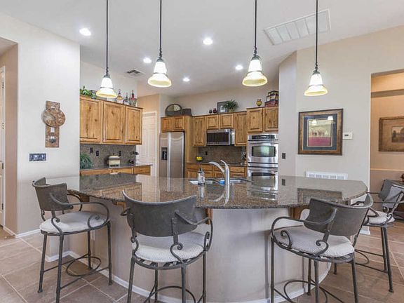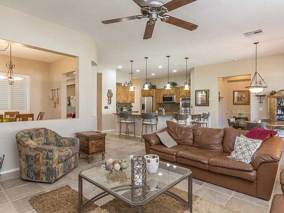 Beautiful one-owner home on a large corner lot in Trilogy at Power Ranch w/2 bedrooms + den & 2 baths in 2114 SqFt. Great room floor plan w/eat-in kitchen & additional dining area. The kitchen has upgraded hickory cabinets, stainless appliances, double ovens, granite counters, walk-in pantry & island w/breakfast bar & pendant lighting. Sliding doors lead out to the covered patio with ceiling fans & additional patio w/built-in seating and the perfect spot for your BBQ! The backyard has easy-care desert landscaping, leaving you more time to enjoy the fabulous community pool, golf, tennis & other amenities! Split bedrooms. The master has wood-look tile floors, bay window, private exit to the patio & en-suite bath w/dual vanities, tiled shower & walk-in closet. The open den has wood laminate flooring and plantation shutters; perfect for a home office or additional tv room! Other features include a 2 car garage w/service door, gas fireplace in the great room, large laundry room with upper/lower cabinets, utility sink & beverage fridge, newer A/C, new tile floors, new exterior paint & much more! See this home today!