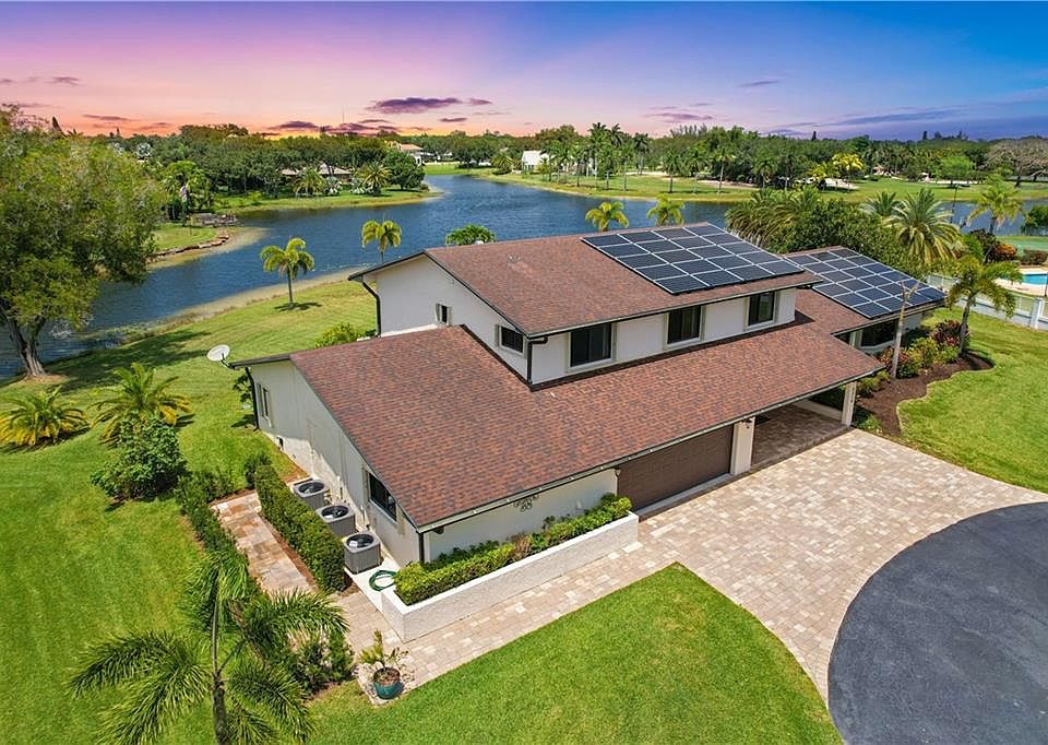 PRICE REDUCED - MOTIVATED SELLER! Beautiful home in the quiet Southwest Ranches community of Ivanhoe Estates. This charming home features many upgrades: Impact windows-accordion shutters, 4 new ac units, new window treatments, flooring, crown moldings, chair rails throughout, central vac, EV Charging Port; new deep well/water treatment system, sprinkler system, solar panels. Large master suite with a deck offering a stunning wide view of the lake. Gourmet style kitchen has granite counters, wood cabinet, large island, pantry and newer appliances: Separate living, dining and family rooms, breakfast area. Situated on over 1 acre with fruit trees, enormous lake with breathtaking views. Additional Guest/In-law's suite with separate private entrance. A+ schools