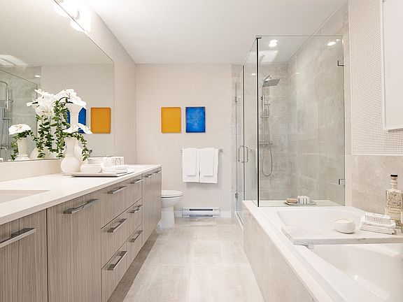 WATERFRONT home with SIDE-BY-SIDE DOUBLE GARAGE. Move into this brand new 4-bedroom home in the master-planned community of Hampton Cove at Polygon's Westhampton. This 1,923 sf. 4 bed townhome features the 4th bedroom with a full bathroom on the lower level, over height main floor ceilings, laminate wood flooring, a central fireplace & deck off of the family room. The kitchen boasts modern custom integrated, sleek appliances, including gas cooktop & engineered stone countertops. The main bedroom offers a large walk-in closet & the ensuite features a generous soaker tub & tub spa shower. Optional AC! Exclusive access to the Hampton Club - a 12,000 square foot residents-only clubhouse. Open by appointment.