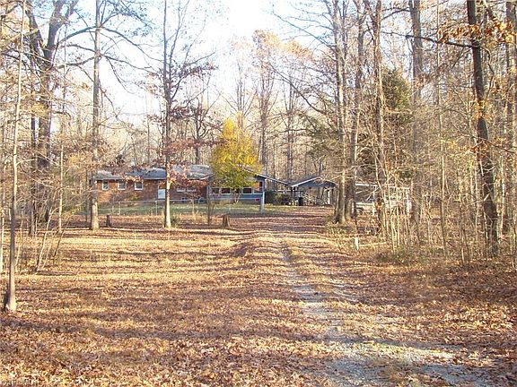 Country living in this brick ranch with full unfinished basement; detached 2-story double car garage all on 6.25 acres in Guilford County. Wood stove in basement that heats the entire home, remains, updated hot water heater, enclosed sun porch not heated. Private driveway and room for horses - no fencing. Detached garage has full 2nd floor needs to be wired and has no heat, great storage. Arrange for a showing in the country with low taxes and easy commute to Greensboro or Burlington.