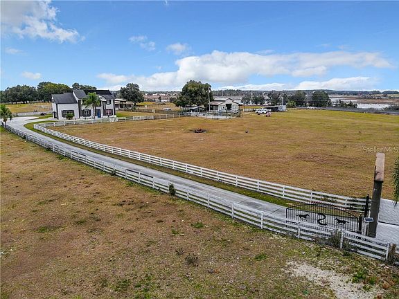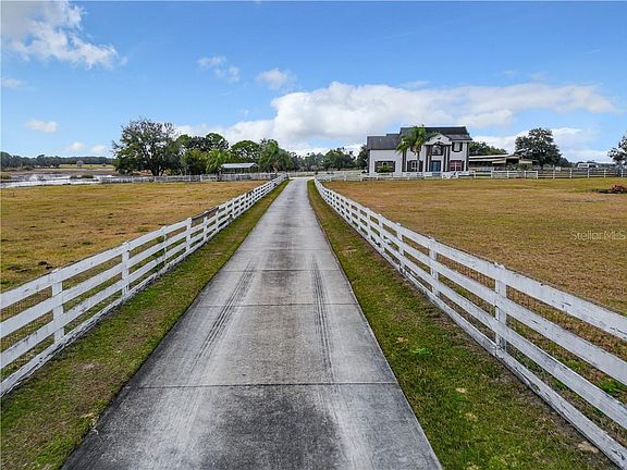 Bring your horses, cows, goats and more to this beautiful 16.7-acre ranch in Leesburg, just minutes from FL's Turnpike, HWY 27 and 45 miles from Ocala, Orlando and Disney. Kitchen has granite countertops, wood cabinets, stainless steel appliances and gourmet kitchen, stainless steel farm sink. Downstairs, you have an office/study and a guest bedroom with a full bathroom. The first floor has porcelain tile, and the second floor in the loft and master bedroom has epoxy. The master bedroom is on the top floor with a large walk-in closet, the master bathroom has a Jacuzzi with a separate shower. The master bedroom has additional space that you can use as storage or another dressing room. In addition, it has a covered porch with a pool screen and a porch with an outdoor gourmet grill with a fire pit where you can enjoy a beautiful sunset with family and friends. The barns are constructed of pressure-treated lumber with metal roofs. Both barns can be accessed from the main road with a gated dirt entrance. The 4-stall barn has electricity, running water and an office with a full bathroom and the center island is concrete. The other 24-stall barn has electricity or running water. All remaining area is fenced / cross fenced and reinforced, providing 7 separate training environments. There is also a small fishing pond on the side of the property. The property is surrounded by beautiful pastures. Call us today to see it !!!
