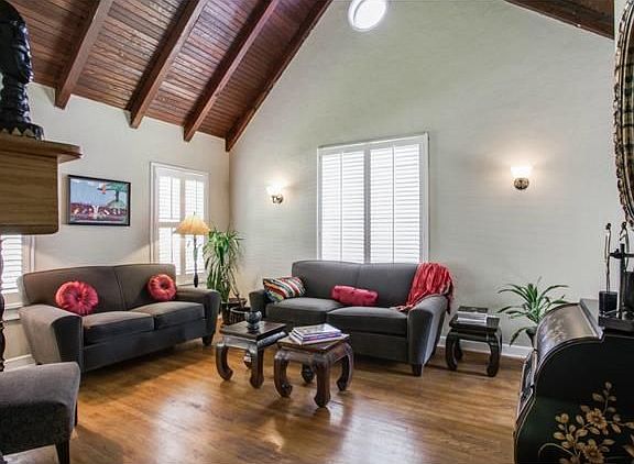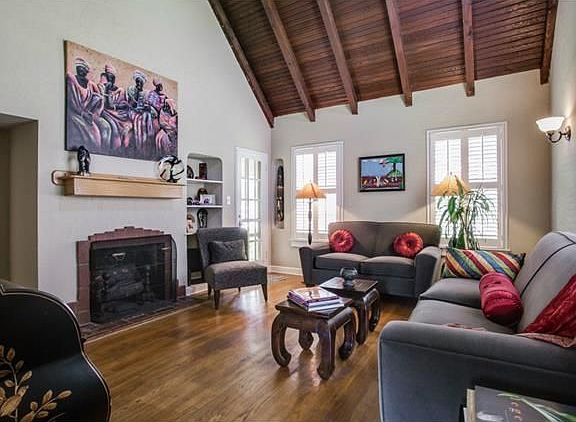 Charming two story bungalow in Oak Lawn Heights. Formal living area features vaulted wood beamed ceiling, gleaming hardwoods, art deco fireplace with gas logs and plantation shutters. Second living area perfect home office or family room. Two bedrooms located on second level plus bonus storage room. Large fenced in backyard with towering trees and side covered porch. Property located near Oak Lawn, Love Field, Medical District and downtown Dallas.