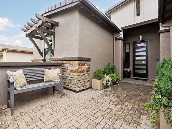 Outside, your resort-like grounds await. The professionally landscaped yard is a picturesque setting for gatherings, boasting an extensive outdoor living area and a cozy fire pit for cool evenings under the stars. Take in the views while enjoying the fresh air from your private covered patio and large fenced in backyard. The home is also equipped with owned solar panels, offering significant long-term energy savings and a reduced carbon footprint for sustainable living. In addition to the efficient living space and outdoor oasis; a spacious 3-car tandem garage with epoxy floors provides ample room for vehicles, storage or a little workshop. This is more than a home; it's a turnkey retreat which is available to be purchased fully furnished as well for your immediate enjoyment. Located for convenience and designed for a sophisticated lifestyle, this home offers everything you've been looking for in the highly sought-after Granite Dells Estates community of Prescott. As a resident, you'll have access to the community's private clubhouse which includes a pool, fitness center, tennis and pickleball courts in addition to miles of walking and biking trails that allow you to explore the rugged beauty of the Granite Dells rock formations right from your doorstep. Live the life you've always dreamed of in this exquisite, thoughtfully designed sanctuary where every day feels like a vacation.