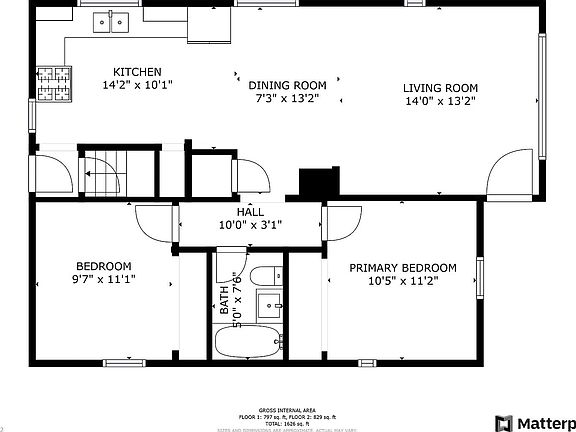 * Charming 2-bedroom, 1-bathroom home boasting original, recently refinished hardwood floors.