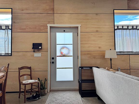 This minimalist-style two-bedroom home blends modern design with timeless quality. Built with durable ICF construction and finished with a metal roof, it’s designed to be efficient, low-maintenance, and built to last. Step inside and you’ll notice the attention to detail; concrete floors, wood finishes throughout, and no MDF anywhere. The trim and window boxes are crafted from wood, adding warmth and character with a mix of natural and painted finishes. The black window frames and tiled kitchen wall add a stylish modern edge, while the open layout and walk-in tiled shower make everyday living effortless. Designed entirely on one level with no steps and featuring 36-inch doors throughout, it’s accessible and easy to navigate for all ages. A heat pump keeps the home comfortable year-round, and with county taxes plus municipal water and sewer, it’s as practical as it is beautiful. Perfect for someone ready to downsize or simplify life without giving up quality. Come check out this thoughtfully built home that balances comfort and efficiency!