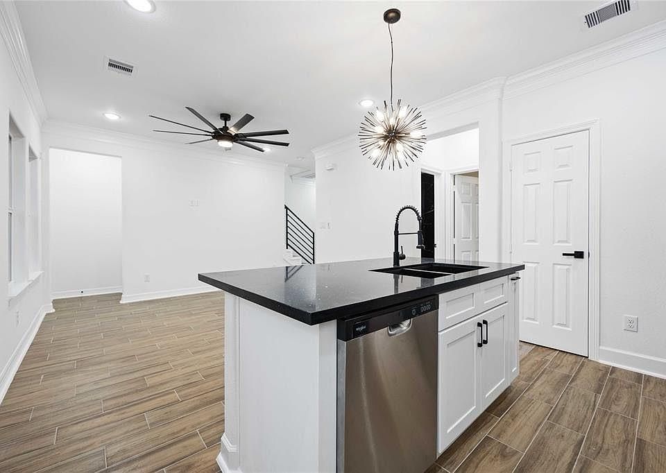 Modern stylePrivate ensuiteSleek contemporary finishesElegant quartz countertopsWalk-in closetStunning kitchenLarge island