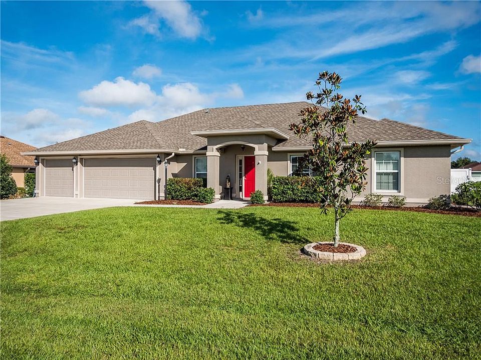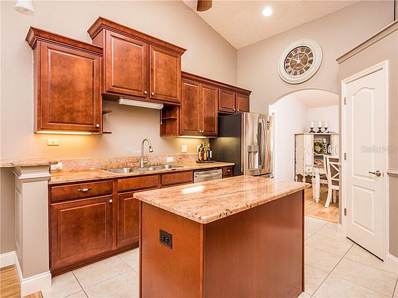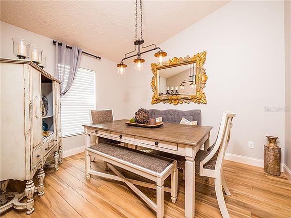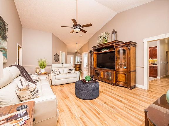 Beautiful 4/3 salt water pool home in popular gated Community of Meadow Glenn. Gorgeous wood look ceramic tile throughout the home, kitchen has Island and breakfast nook over looking the pool, upgraded granite/cabinets, Stainless Steal Appliances, triple sink, pull outs in lower cabinets, and Pantry! Large Master Suite with door to lanai, large his/her walk-in closets, dual sinks, garden tub, walk in shower; Office/den, formal dining room, inside laundry room with cabinets, along with so many extras: vaulted ceilings, window trim, fluted jam archways, pocket doors; Privacy fence in back surrounding the Saltwater pool w/fountain, solar heat and deck with screened enclosure. Convenient location with low HOA - Call today to schedule a showing.